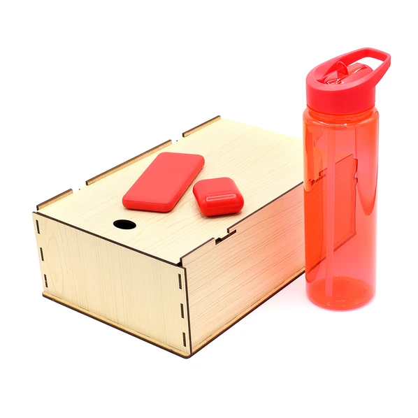 Набор подарочный «Спорт»: наушники беспроводные, внешний аккумулятор 5000 mAh, бутылка для воды, красный