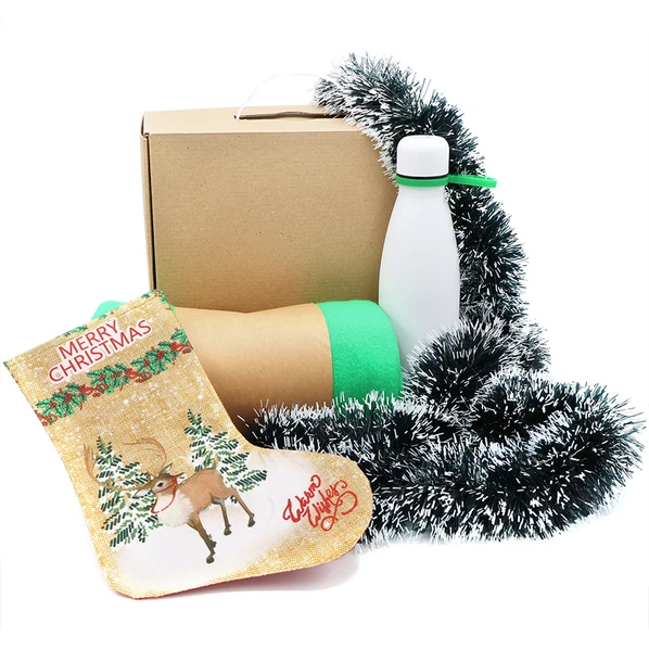 Набор подарочный «Теплый вечер»: плед, термобутылка, новогодняя мишура, подарочный сапожок, зеленый