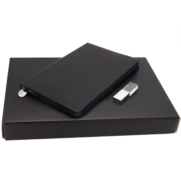 Успейте запечатлеть всё интересное с черным набором «Заметь и запомни»! Этот стильный комплект включает в себя ежедневник и удобную флешку, упакованные в элегантную коробку. Он станет идеальным спутником для креативных людей, стремящихся сохранить свои идеи и вдохновение. Пусть каждая страница и каждый файл станут шагом к вашим мечтам, а этот набор — вашим личным проводником в мир бесконечных возможностей!