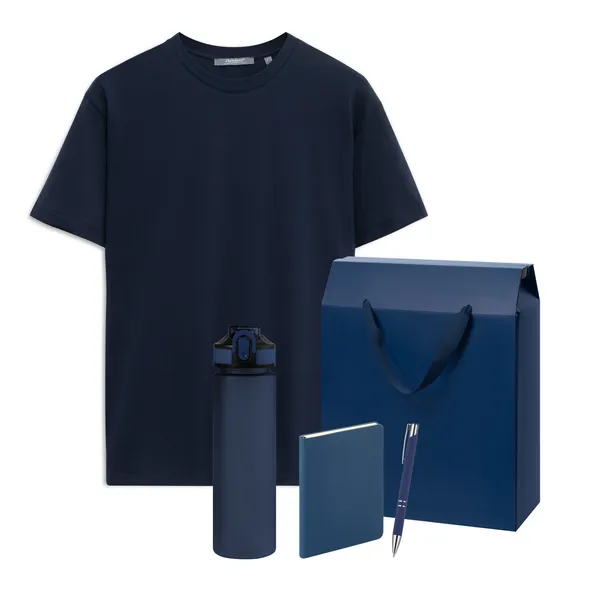 Набор с одеждой Kris: футболка, термокружка, блокнот, ручка, М, синий