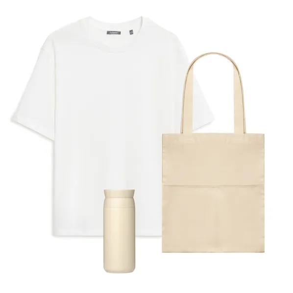 Набор с одеждой Rust: футболка, термобутылка, шопер, XS/S, белый / бежевый