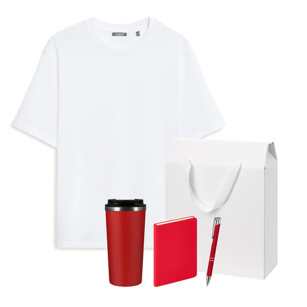 Набор с одеждой Rust: футболка, термокружка, ежедневник недатированный, ручка, M/L, белый / красный