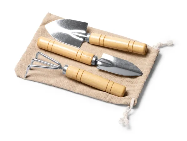Садовый набор из 3 аксессуаров из нержавеющей стали и бамбуковая ручка. Включает большую и малую лопатки и грабли.