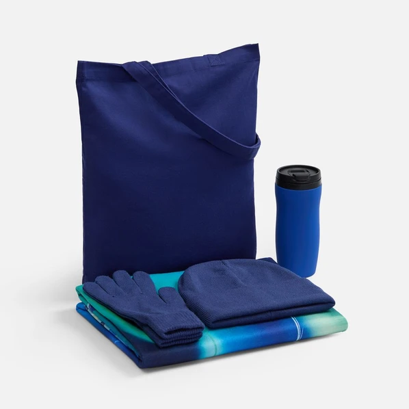 Синий набор «Северное сиятельство» — это выражение заботы и нетривиальный комплимент в одном шопере! В нем тонко переплетены дух современного города и очарование северной сказки. Его элементы лаконичны и функциональны, а главная изюминка — живописный плед с изображением aurora borealis — добавляет ноту настоящего чуда.