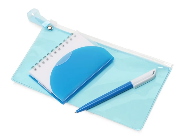Набор Smart Mini: блокнот А7, ручка шариковая, пенал с zip-замком, голубой / белый