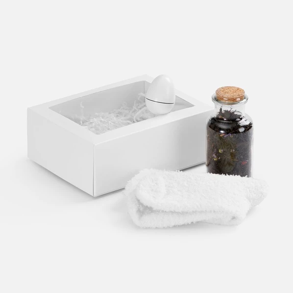 Это базовые элементы заботы — мягкие носки и бальзам для губ — и уникальный сорт чая, задающий особое настроение. Идеальное решение для всех, кто ценит спокойные моменты уединения и эстетику повседневных ритуалов.