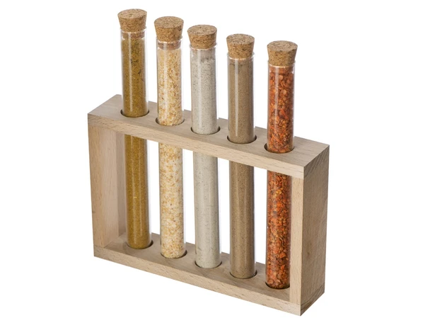 Размеры: подставка- 15 х 3,5 х 10 см, колба со специями- d1,6 х 16см