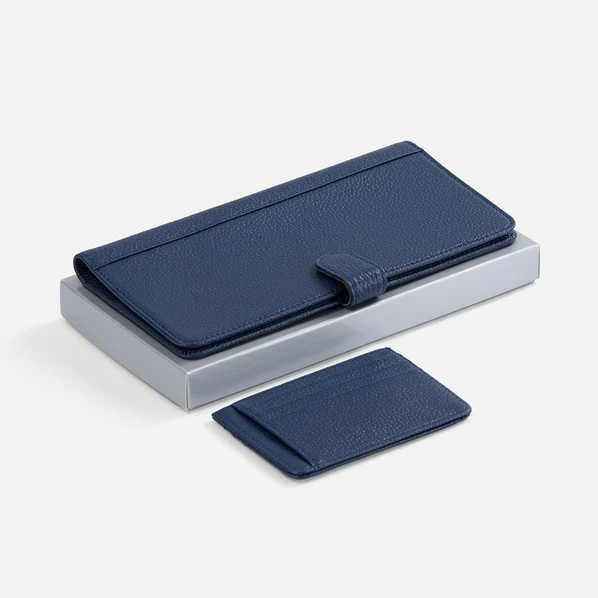 Набор Unison Travel из натуральной кожи для идеального порядка в путешествиях. Стильный дорожный органайзер Unison поможет компактно разложить все необходимые вещи в рюкзаке или чемодане, а тонкий чехол для карт надежно защитит ваши банковские, дисконтные карты и документы. Элегантный синий цвет и лаконичный дизайн делают этот комплект универсальным спутником для любого путешественника.