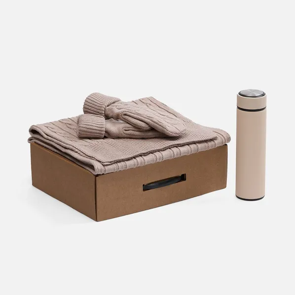 По-настоящему зимний бежевый набор Wintrish продемонстрирует самую теплую заботу и создаст атмосферу уюта и комфорта в холодные дни. Беспроигрышный сезонный дуэт — стильные шарф и варежки фактурной вязки, а также термос в корпусе soft touch с ситечком для заваривания будут дарить самые приятные эмоции снова и снова.