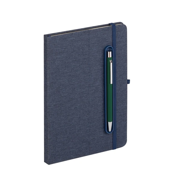 • Блокнот формата А5 с резинкой-фиксатором и встроенным в обложку магнитным держателем для ручки. Внутренний блок состоит из 160 страниц в линейку бумаги плотностью 70 г/м2. Материал обложки изготовлен из переработанного (RPET) пластика. Магниты прочно и надежно закрепляют металлическую ручку на обложке. Бонус – обложка трансформируется в удобную подставку для смартфона/планшета/ноутбука;