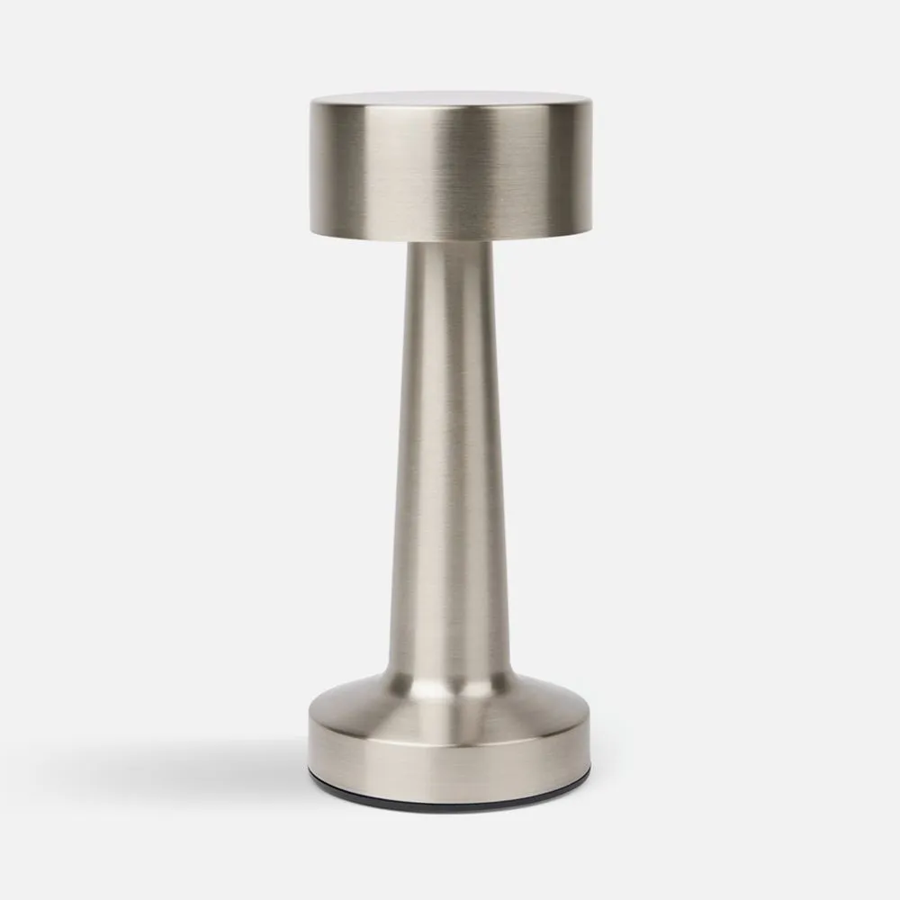Настольная серебристая лампа Maris изготовлена из прочного металла и переработанного АБС-пластика.