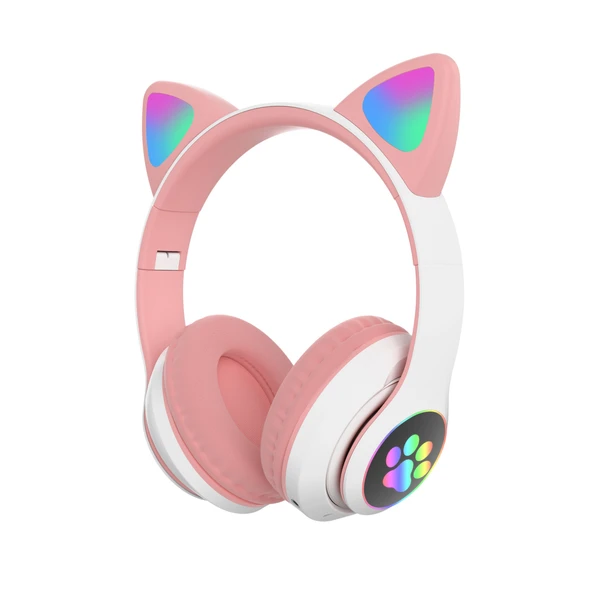 Детские беспроводные полноразмерные наушники розового цвета Prolike с подсветкой «кошачьи ушки» станут отличным подарком для каждого ребенка! Помимо яркого дизайна в наушниках есть ряд преимуществ: гипоаллергенные материалы, качество звука приятно удивит даже искушенного взрослого, выходная мощность соответствует рекомендациям ВОЗ (уровень шума до 85 дБ).