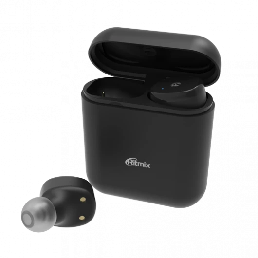 Черные беспроводные наушники-затычки с док-станцией на 400 мАч True Wireless Ritmix RH-807BTH. Этот аксессуар идеален в работе с мобильными телефонами, IPad/Phone/IPad, с планшетными компьютерами, MP3-плеерами и другими аудиоустройствами.