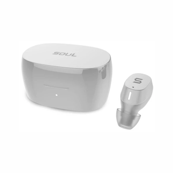 Белые портативные наушники True Wireless Soul с возможностью юеспроводнйо синхронизации со смартфоном. Встроенный в наушники аккумулятор позволят наслаждаться сбалансированным звуком Soul с плотным басом до 4-х часов непрерывного воспроизведения. Имеют водоотталкивающую защиту.