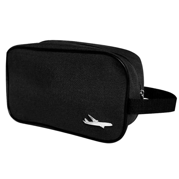 Несессер «Колумбс» с металлическим шильдом «Самолет», черный / серебряный - фото № 1