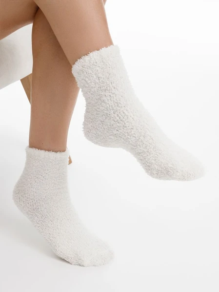 Пушистые белые носки Flaum — это не просто аксессуар, а настоящее объятие для ног, которое подарит заботу и уют в любое время года. Удлиненная форма и согревающий материал не дают ногам замерзнуть, а мягкая текстура приятно ощущается на коже, создавая максимальный комфорт даже в самые холодные дни.