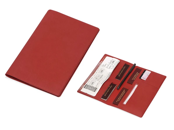 Вместительный и стильный органайзер красного цвета Famtri. Предназначен для документов, незаменим в путешествии. Выполнен из качественного материала. Экокожа приятна на ощупь.