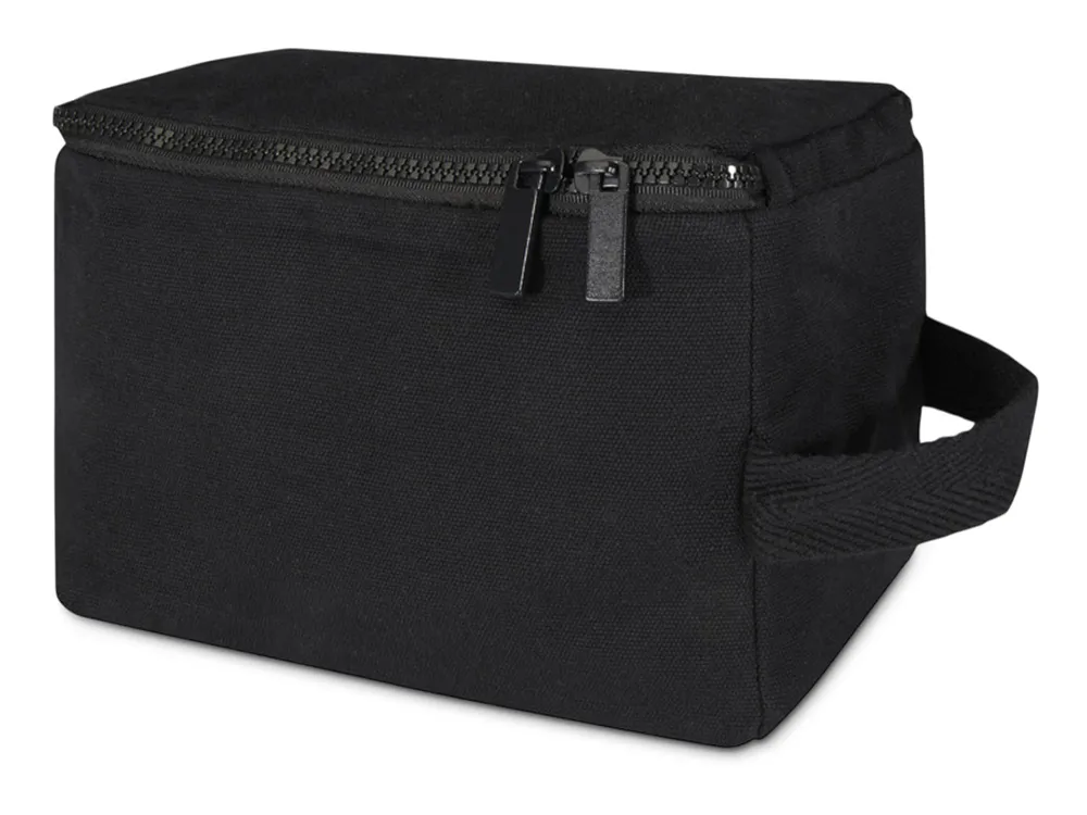 Черный органайзер для туалетных принадлежностей, изготовленный из переработанного хлопка и переработанного полиэстера плотностью 500 г/м², с просторным основным отделением с надежной застежкой-молнией и несколькими внутренними накладными карманами, что делает его идеальным для хранения необходимых туалетных принадлежностей.