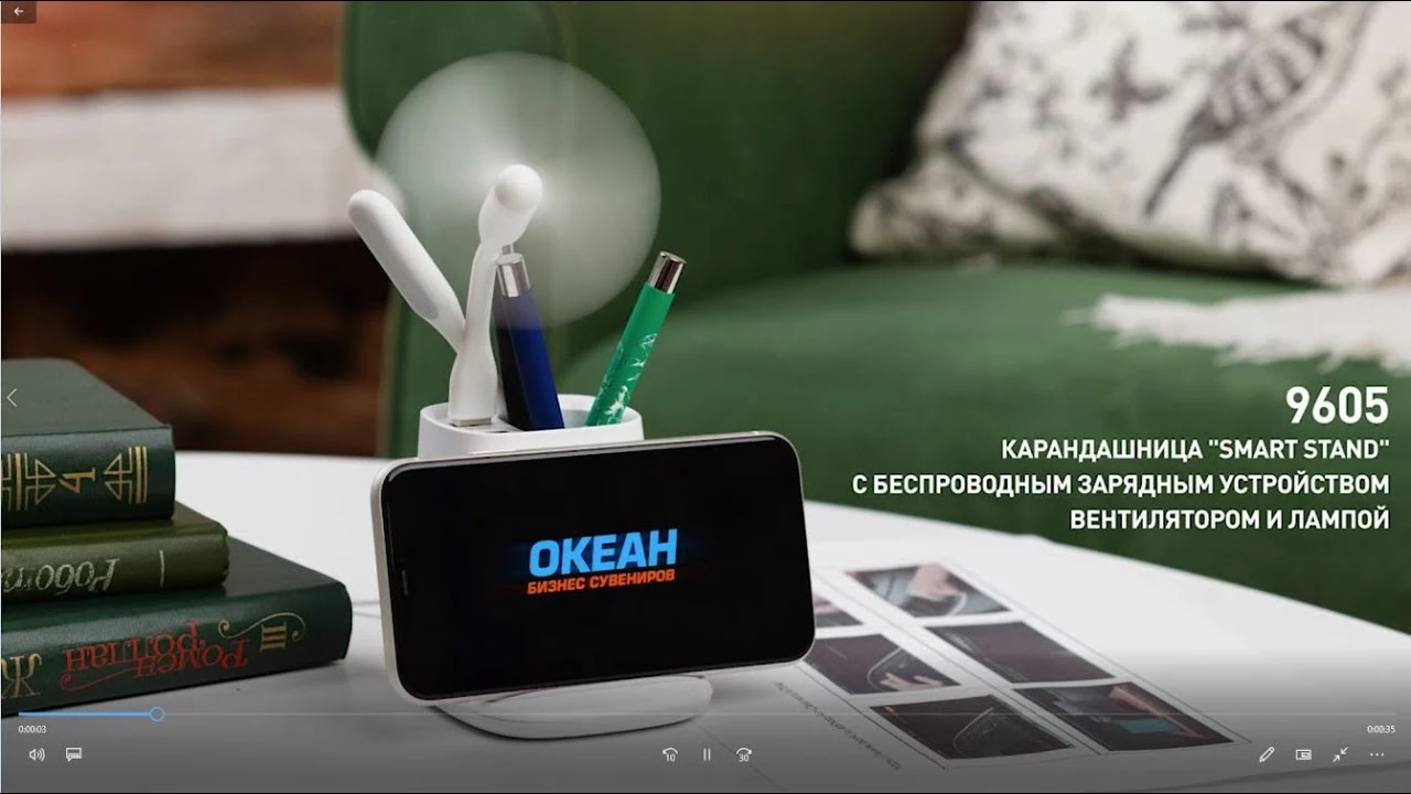 Мультифункциональный подарок в компактном формате. Органайзер подключается к USB-разъёму (ноутбука/компьютера) кабелем длиной 1 м. 2 выхода USB, предназначенные для вентилятора и лампы, можно также использовать для зарядки телефонов проводным способом — таким образом можно заряжать одновременно 3 гаджета.