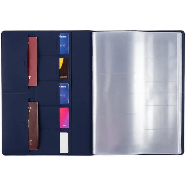 Удобный синий органайзер для хранения документов всей семьи: свидетельств о рождении, дипломов, сертификатов, страховых свидетельств, водительских удостоверений, СНИЛС, полисов ОМС и ДМС.