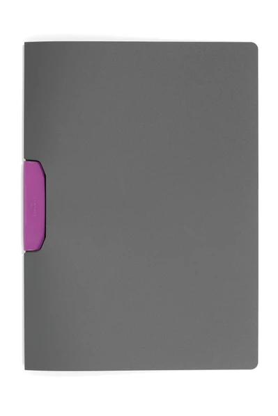 Папка DURASWING® Color привлекательного цвета графит позволяет без степлера и дырокола скреплять документы с помощью специального клипа-зажима розового цвета.
