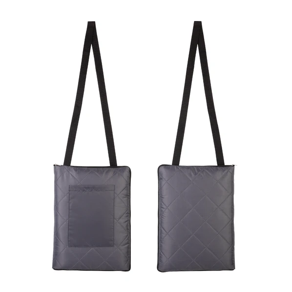 Влагостойкий серый плед Summer для пикника и отдыха на пляже складывается в компактную сумочку для переноски и хранения. В собранном виде внутри остается место для небольшого термоса, зарядного устройства, книги или других малогабаритных предметов, необходимых на отдыхе. С внешней стороны предусмотрен открытый карман 16х22 см, хорошее место для персонализации.