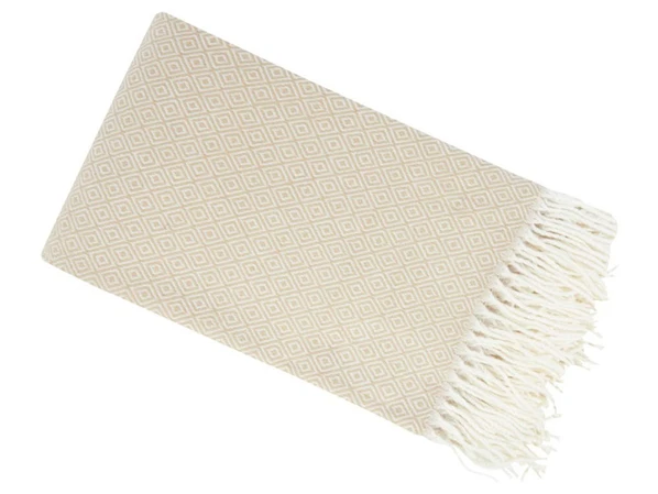 Прочное, но мягкое и удобное летнее бежевое одеяло с классическим ромбовидным узором, придающим ему современный вид.