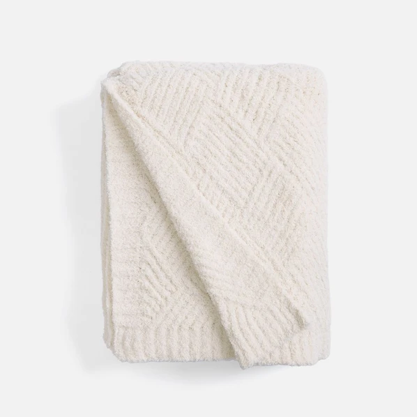 Изделие завораживает с первого взгляда: рельефный узор дарит пледу выразительность и премиальный вид. Плотная, увесистая структура материала мягко обволакивает и приятной тяжестью ощущается на теле.