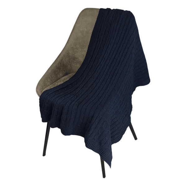 Синий плед Fado с фактурной вязкой «косы» станет вашим незаменимым спутником как дома, так и на природе. Берите его с собой в путешествия – лёгкий и компактный, он не займёт много места в багаже.