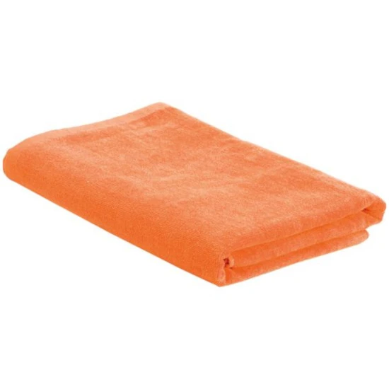 Оранжевое полотенце можно сложить в компактную форму и поместить в пляжную сумку. Для того чтобы преподнести изделие, можно заказать печать. Товар предлагается в сумке.