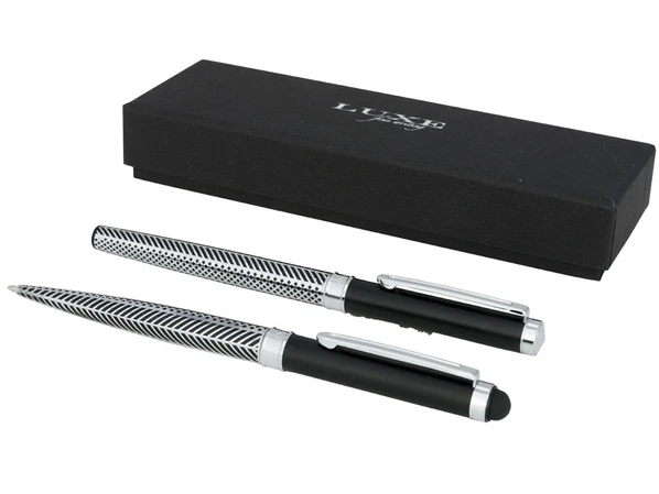 Стильный внешний вид изделий можно дополнить нанесением собственного логотипа. Вместе в подарочной упаковкой этот комплект зарекомендовал себя как престижный подарок VIP персоне. С легкостью подчеркнет статус владельца.