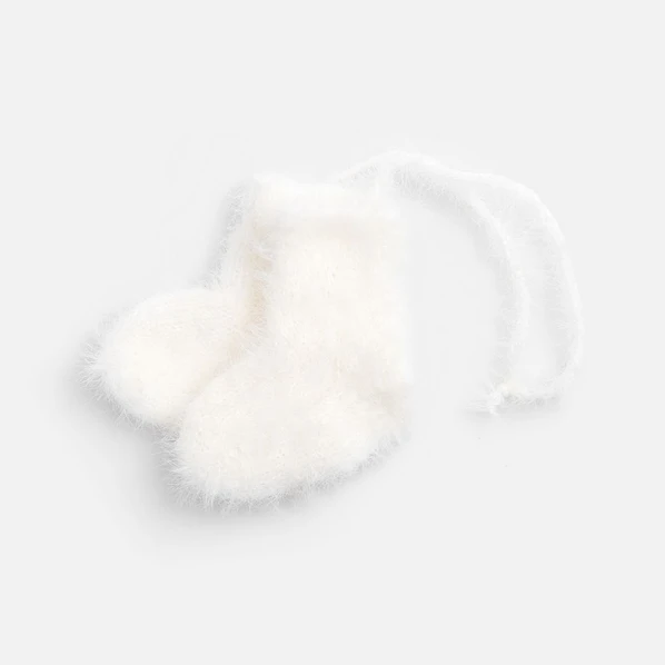 Миниатюрные вязаные подвески «Вьюшка» в виде белых носочков — это уютное и милое украшение для елки и новогоднего интерьера, отличное дополнение к основному подарку. Они добавят тепла и радости в пространство, создавая праздничное настроение.