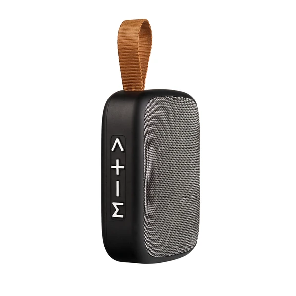 Коричнево-серая Bluetooth-колонка Rombica Мysound BT-24 с текстильной отделкой и лямкой-подвесом. Компактное устройство подарит Вам долгие часы наслаждения чистым и сбалансированным звуком на природе, в гостях или дома!