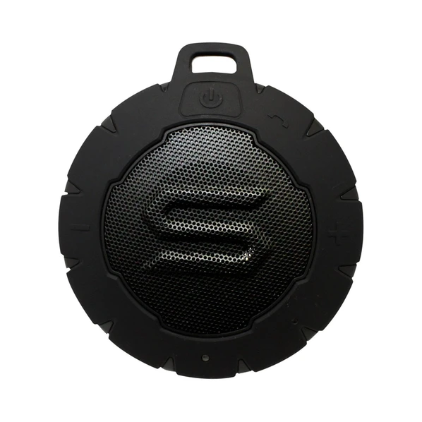 Черная круглая портативная колонка SOUL STORM. Пластиковый корпус обшит силиконом, что наделяет колонку поистине великолепными противоударными показателями! Даже если гарнитура упадет, то это никак не скажется на ее работе.