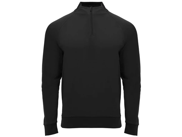 Классический детский черный пуловер Roly Epiro с воротом на молнии и рукавом реглан.