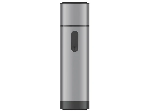 Серебристое пуско-зарядное устройство с литий-ионным аккумулятором.