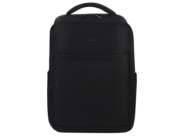 Черный бизнес-рюкзак с усиленным карманом для ноутбука 14''. Большой карман снаружи и 2 боковых кармана. 2 вместительных отделения.