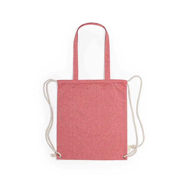Красный рюкзак с кулиской, изготовлен из прочного переработанного хлопка плотностью 140 г / м2, с соответствующими ручками для переноски, 70 см.