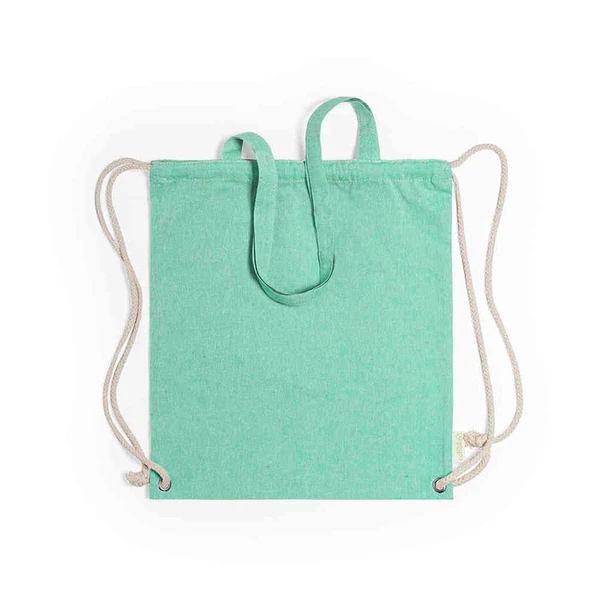 Зеленый рюкзак с кулиской, изготовлен из прочного переработанного хлопка плотностью 140 г / м2, с соответствующими ручками для переноски, 70 см.