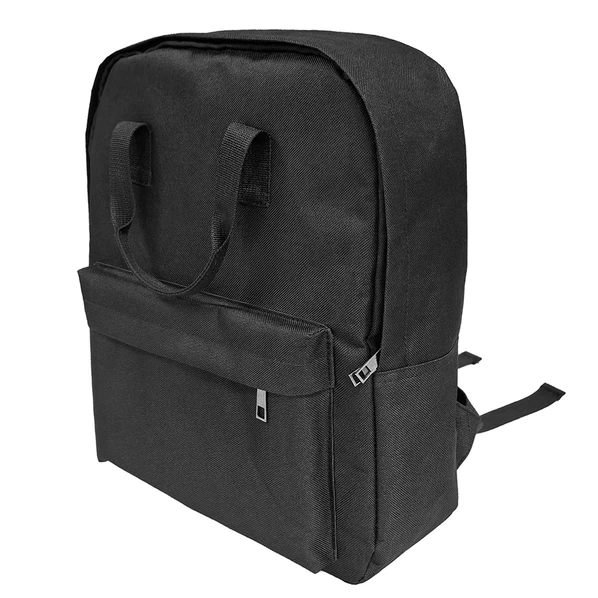 Актуальный и практичный черный городской рюкзак промо-рюкзак Kankin. Одно основное отделение и объемный передний карман закрываются на скрытые молнии, что предотвращает попадание внутрь дождя и снега. Две короткие ручки и уплотнённые регулируемые по длине плечевые ремни. Уплотнённая задняя стенка.