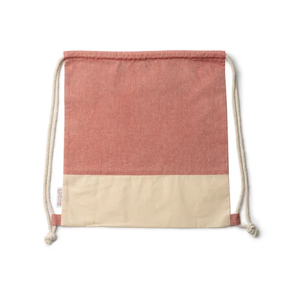 Стильный красный рюкзак-мешок Luanda на шнурках из переработанного хлопка с ЭКО отделкой из натурального хлопка плотностью 120 г/м².