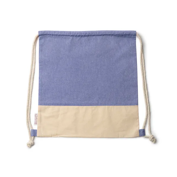 Стильный синий рюкзак-мешок Luanda на шнурках из переработанного хлопка с ЭКО отделкой из натурального хлопка плотностью 120 г/м².