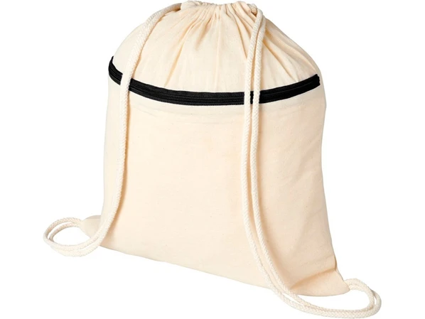 Рюкзак Oregon на молнии с кулиской. Большое основное отделение затягивается хлопковым шнурком. Спереди расположен цветной карман на молнии. Прочность до 5 кг.