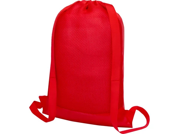 Красный рюкзак Nadi со шнурком и главным отделением на шнуровке в цвет изделия. Имеет большие регулируемые плечевые ремни, изготовлен из полиэстеровой сетки.