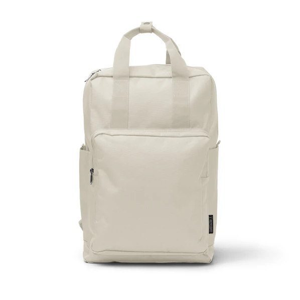 Стильный бежевый рюкзак Levix сделан из переработанного полиэстера 600D. В оновном отделении на молнии уплотнённый карман для ноутбука до 16 дюймов. На передней стенке большой объёмный карман на молнии. Два глубоких боковых кармана. Уплотнённые плечевые ремни и задняя стенка. Две коротких ручки для переноски закрываются холдером на кнопку.