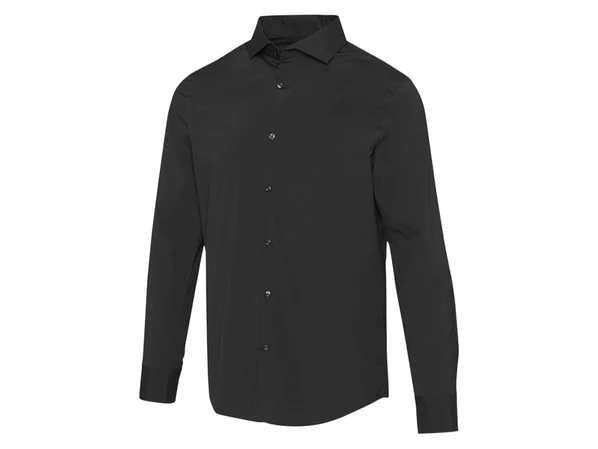 Мужская черная рубашка из поплина с длинными рукавами Carnelian сочетает в себе современную изысканность и повышенный комфорт. Изготовленная из высококачественного хлопка, сертифицированного BCI, с добавлением эластичности, она имеет усовершенствованную двухслойную структуру волокна плотностью 30 денье, которая обеспечивает гладкость верхнего слоя, исключительную долговечность и роскошные ощущения.