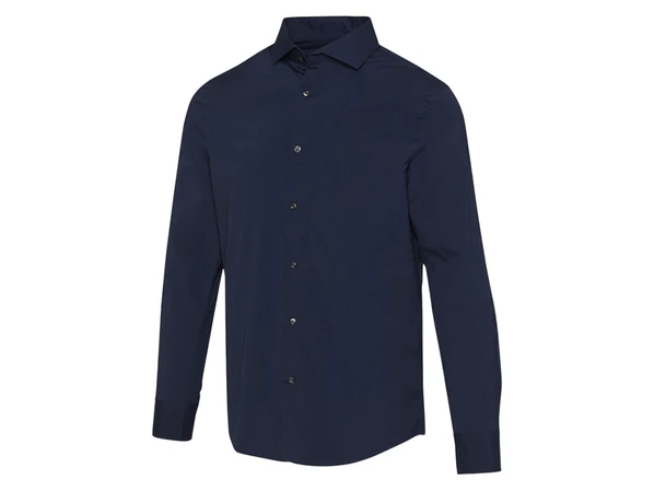 Мужская синяя рубашка из поплина с длинными рукавами Carnelian сочетает в себе современную изысканность и повышенный комфорт. Изготовленная из высококачественного хлопка, сертифицированного BCI, с добавлением эластичности, она имеет усовершенствованную двухслойную структуру волокна плотностью 30 денье, которая обеспечивает гладкость верхнего слоя, исключительную долговечность и роскошные ощущения.
