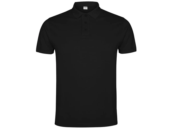 Мужская рубашка черного цвета поло Roly Imperium с коротким рукавом, из высококачественного комфортного полотна. Воротник с планкой на три пуговицы в тон ткани. Шов горловины обработан тесьмой. Спинка немного длиннее переда. Двойная отстрочка по плечевым швам, рукавах и внизу изделия.