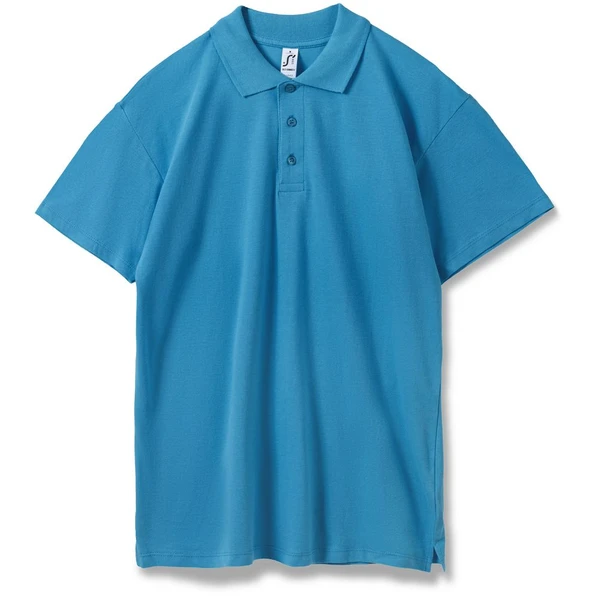 Мужская ярко-бирюзовая футболка-поло Summer от бренда Sol's - это самая востребованная модель поло в ассортименте. Классический силуэт и прямой низ изделия с боковыми разрезами делают модель универсальной для всех типов фигур.