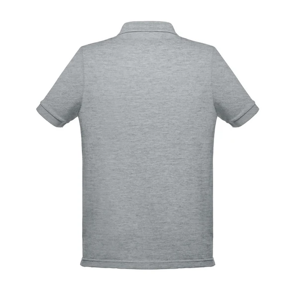 Мужская серая рубашка-поло из смесовой ткани-пике. Полотно футболки упругое и гладкое благодаря обработке ферментами "enzyme wash" и сохраняет форму при стирке. Модель полуприлегающего силуэта. Благодаря манжете из риба 1х1 рукав смотрится очень аккуратно.